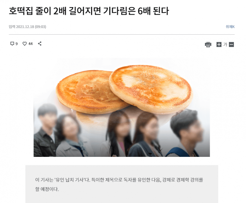 호떡집 줄이 2배 길어지면 기다림은 6배가 된다.