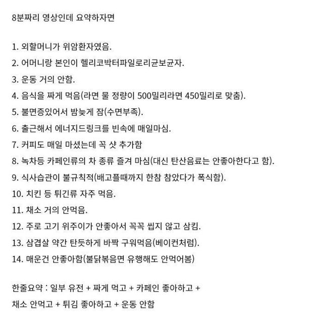 38세 위암환자의 식습관
