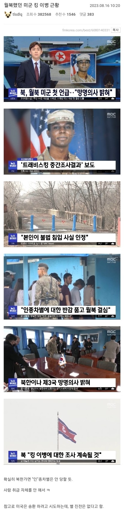 월북했던 미군 킹 이병 근황...