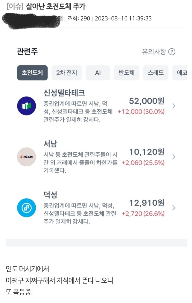 살아난 초전도체 주가