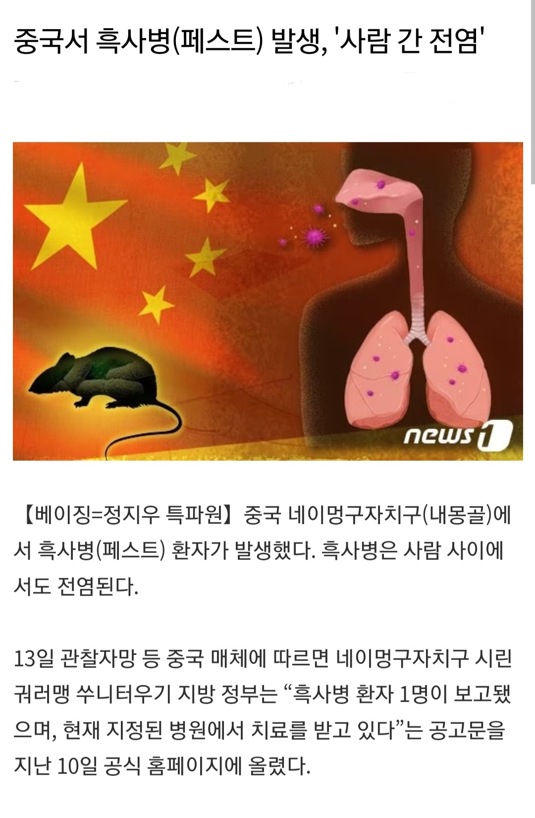 최근 중국에서 발병한 질병