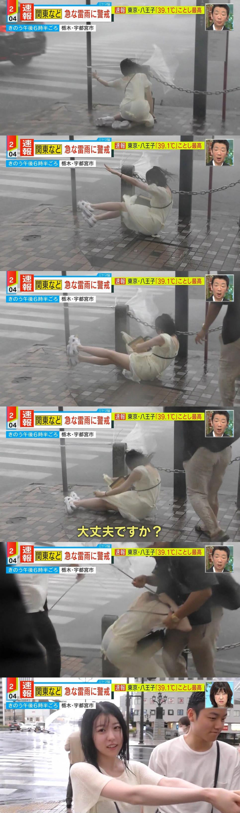 강력 태풍에 쓰러진 일본 누나