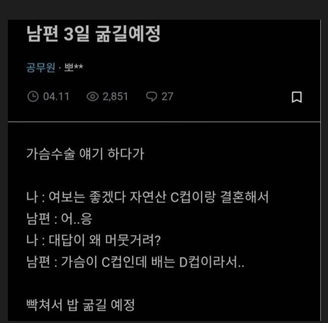 남편 3일 굶길 예정