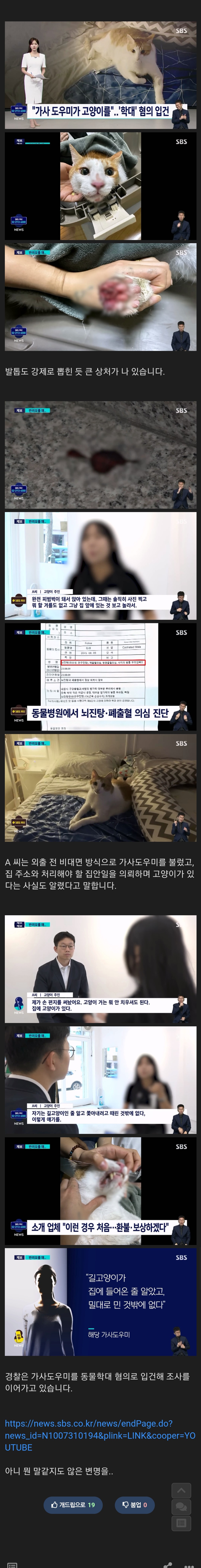 가사도우미가 의뢰 받은 집고양이 동물학대
