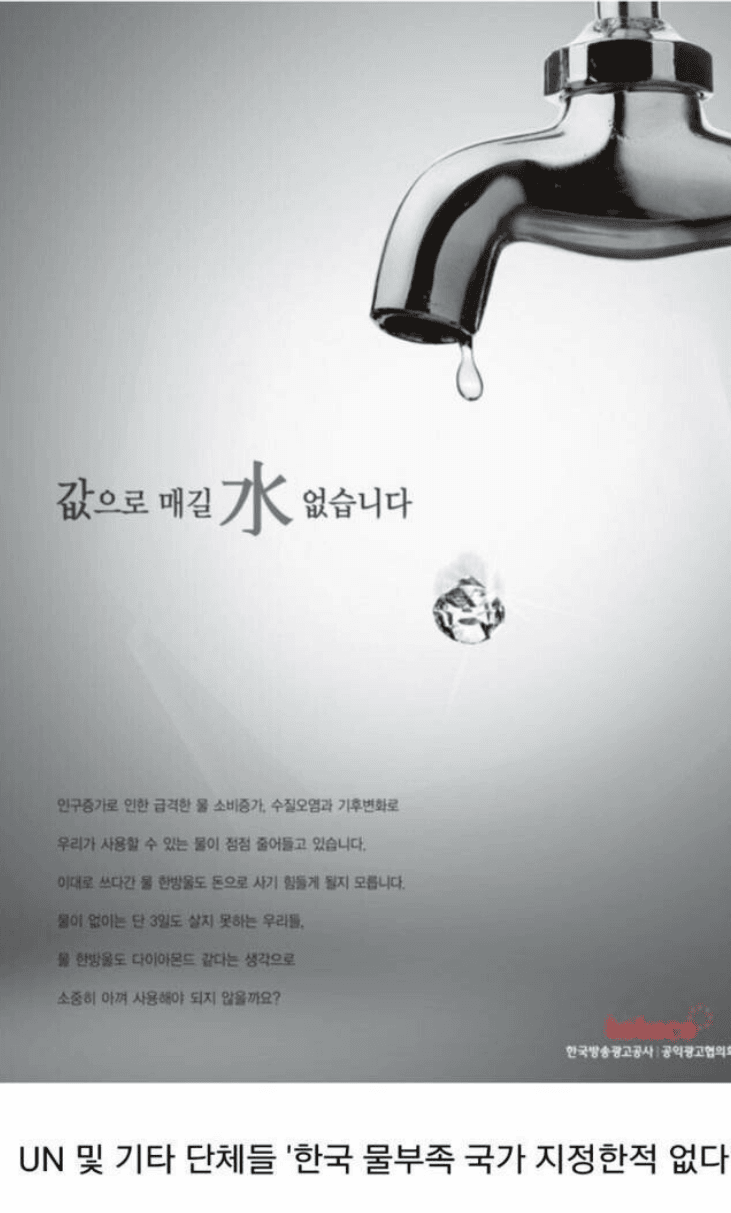 정작 한국은 전세계에서 몇 안 되는 '수돗물을 그대로 식수로 사용할 수 있는' 축복받은 물 풍성 국가임ㅋㅋ