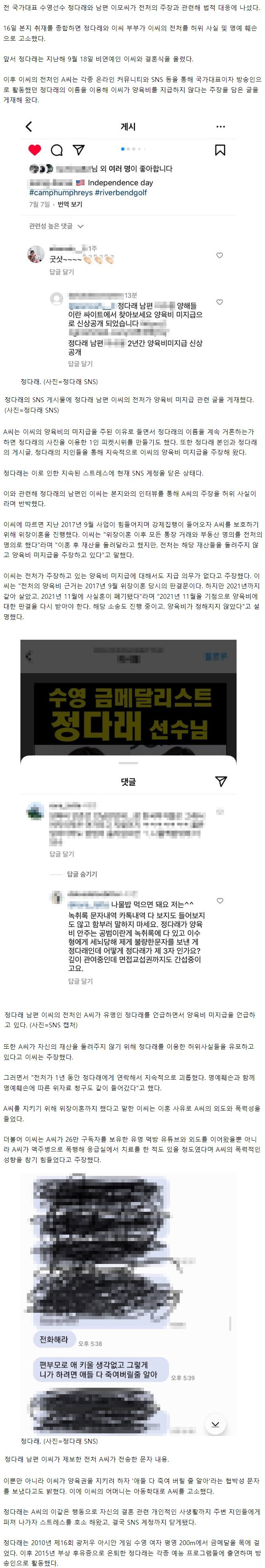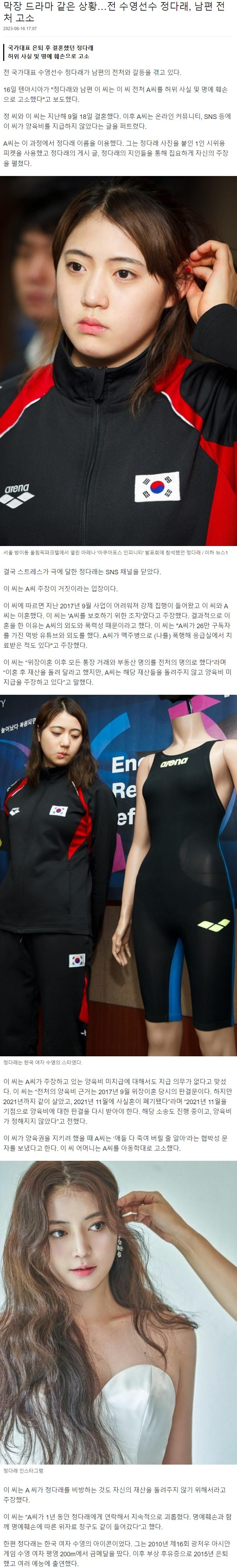 '막장 드라마' 정다래 남편 전처 고소 ㄷㄷ
