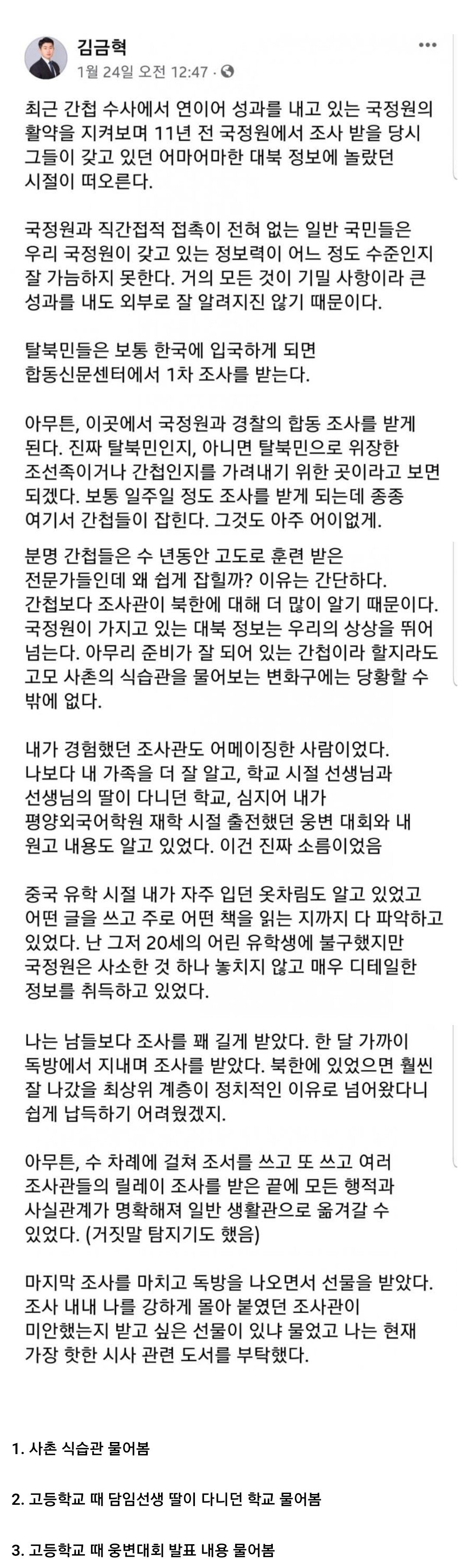 저 글 쓴 탈북자는 북한 상위 1퍼 최상류층이엿다함