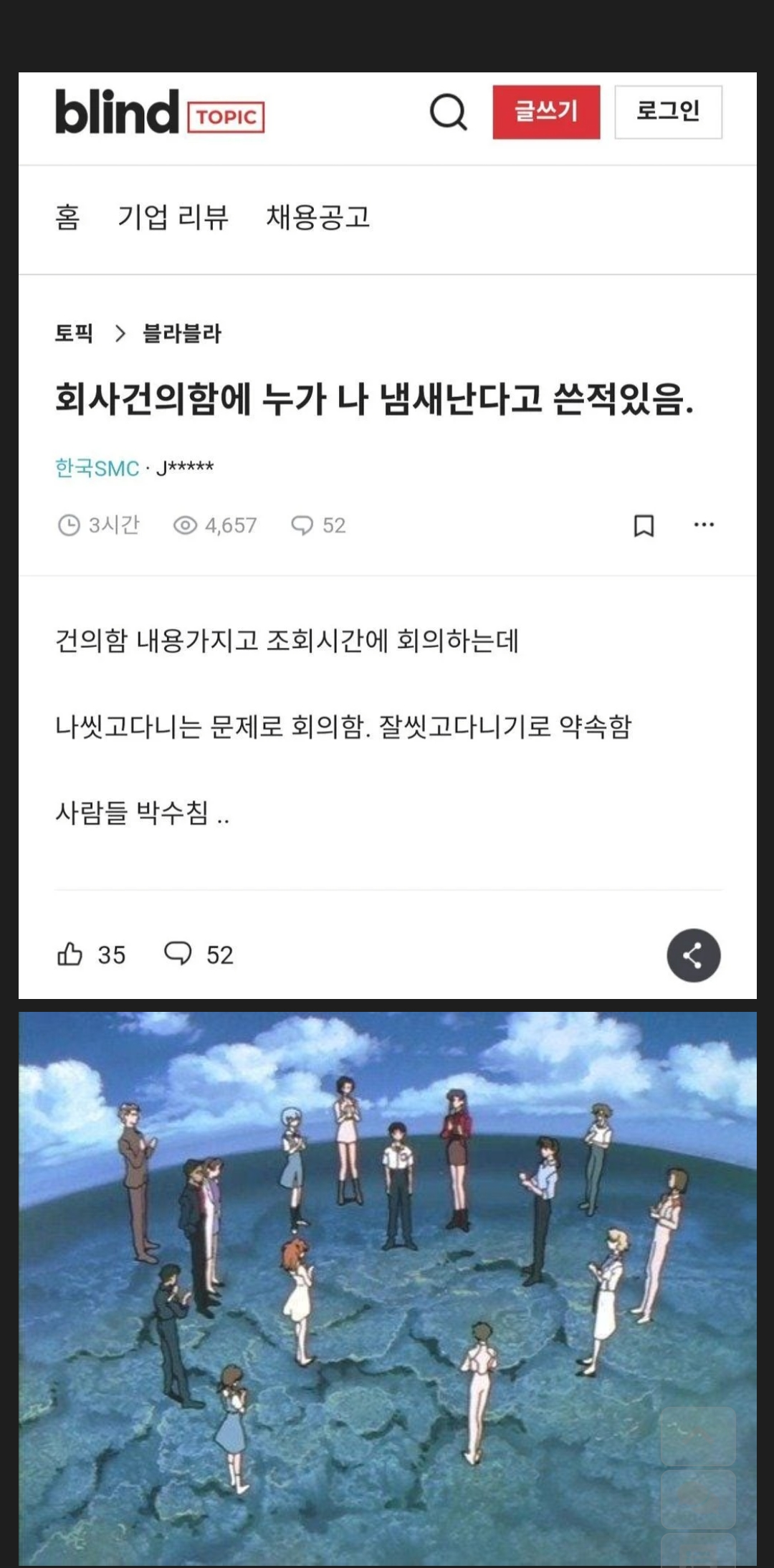 회사 건의함에 누가 나 냄새난다고 쓴적있음