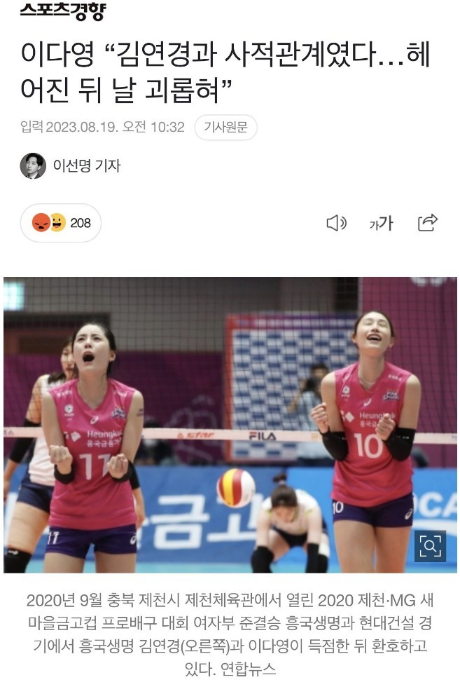 '술집 여자 취급' 이다영, 김연경 관련 2차폭로