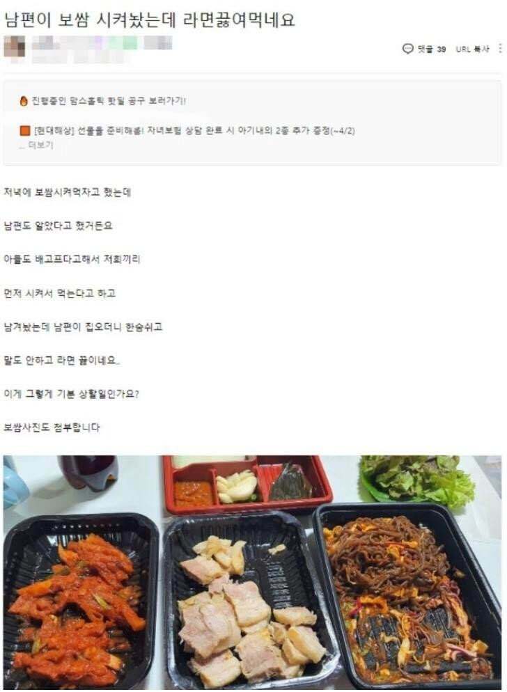 남편이 보쌈시켰는데 라면 끓여