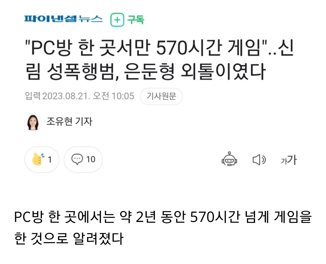 성폭행범 게임중독자 기사