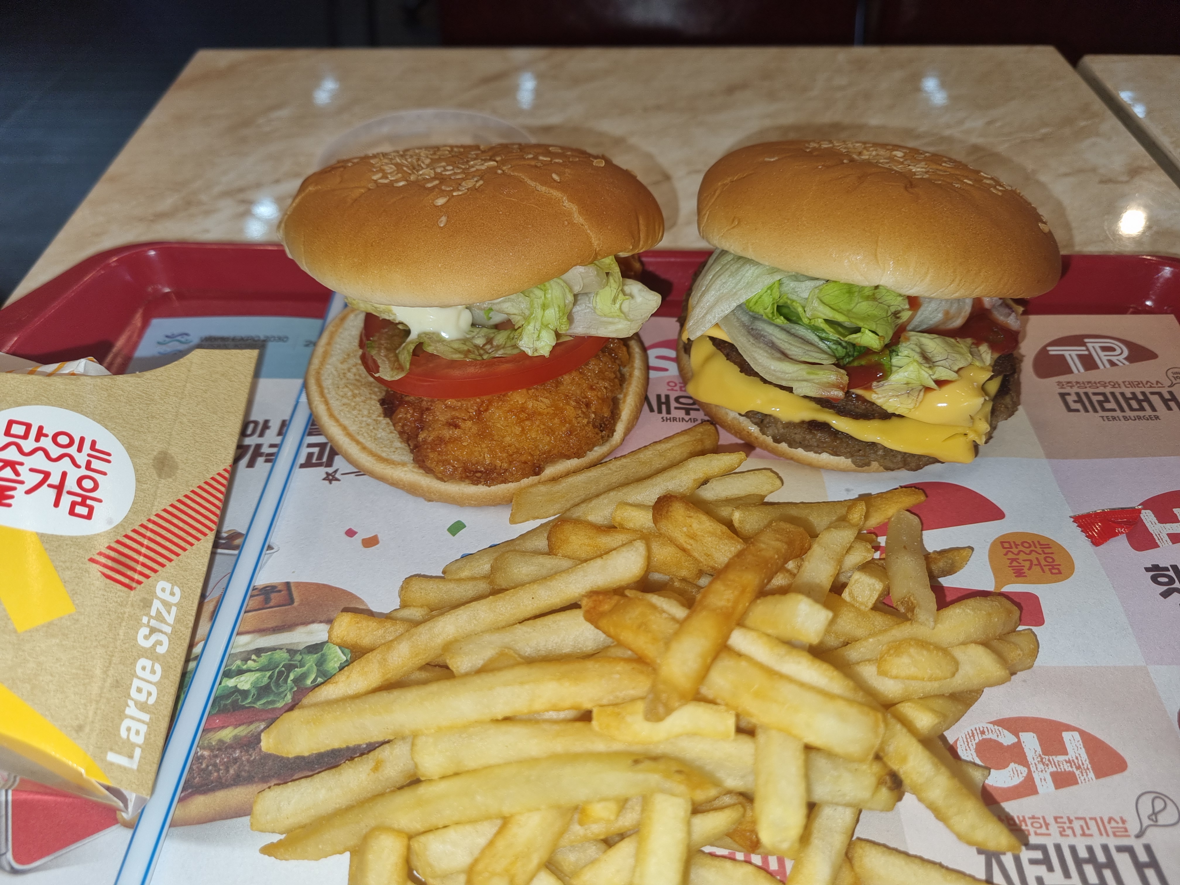 아까 지하철역 앞에서 더블x2버거 시키니까