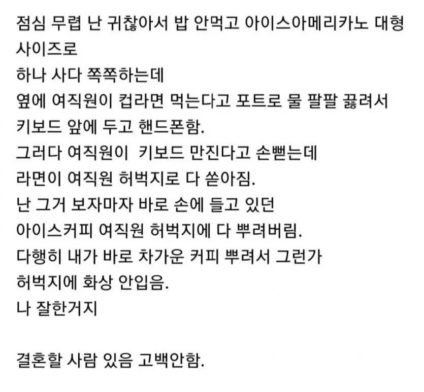 여직원 허벅지에 커피 뿌린 썰