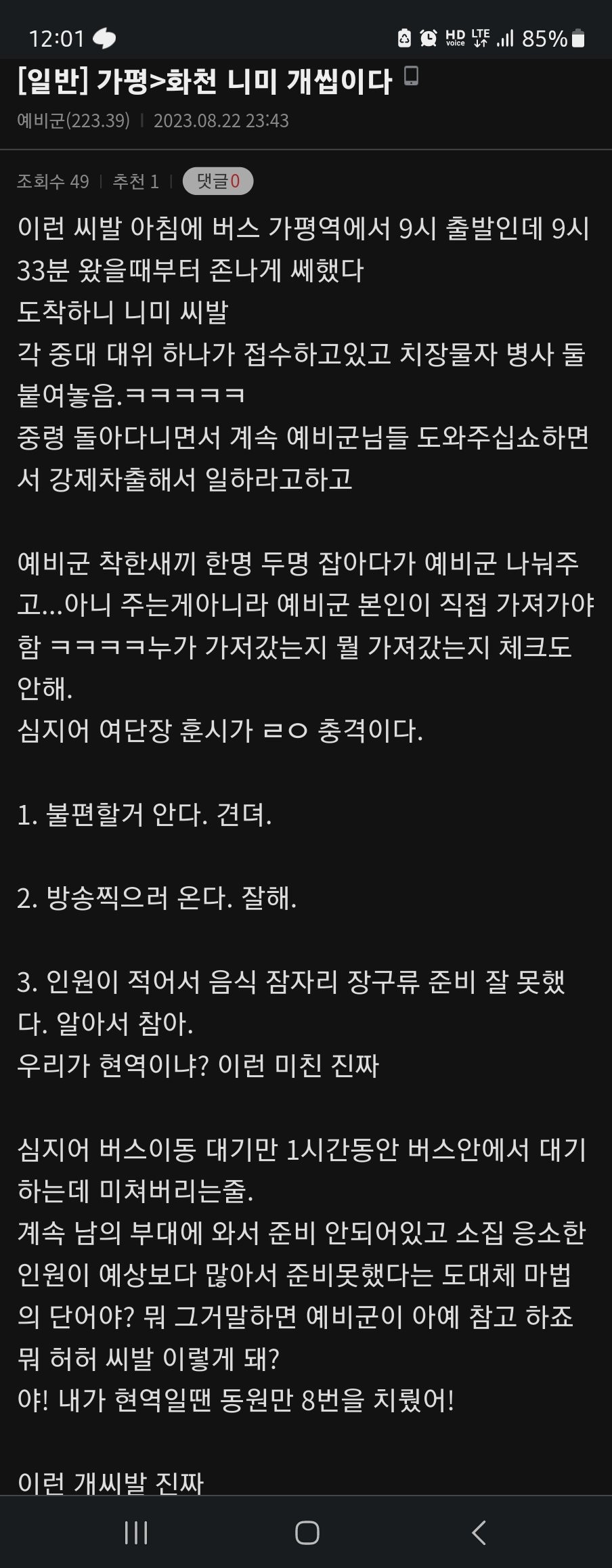 받은 사람들 개빡쳤다는 가평-> 화천 예비군 훈련 근황...jpg