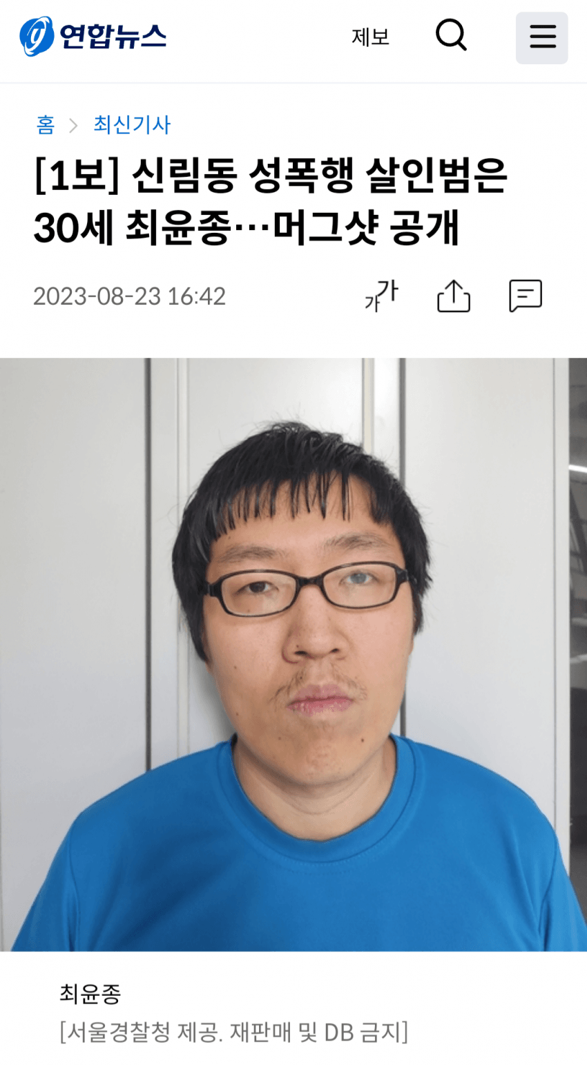 신림동 성폭행 살인범 머그샷
