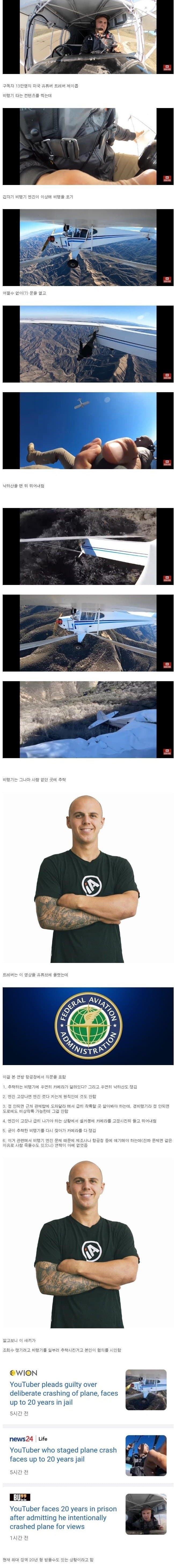 비행기 고의로 추락시킨 13만 유튜버.