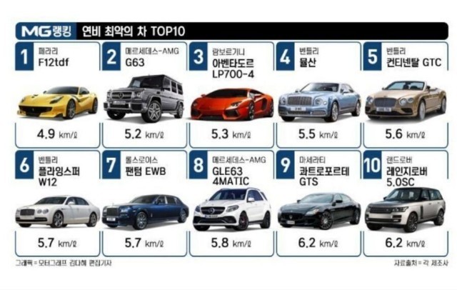 연비 최악의 차량 TOP 10