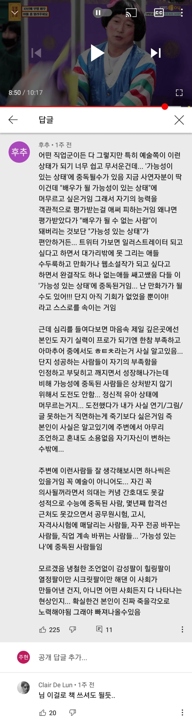 한 발짝 더 내딛기엔 실패가 두려움 + 본인의 부족한 재능을 직시해야 함