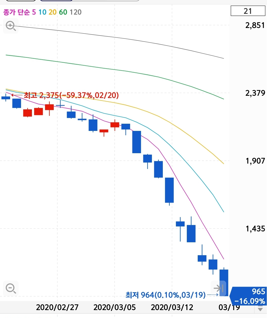 고아 초등학생 청구사건까지 터지니까 2주만에 55%가 날아감