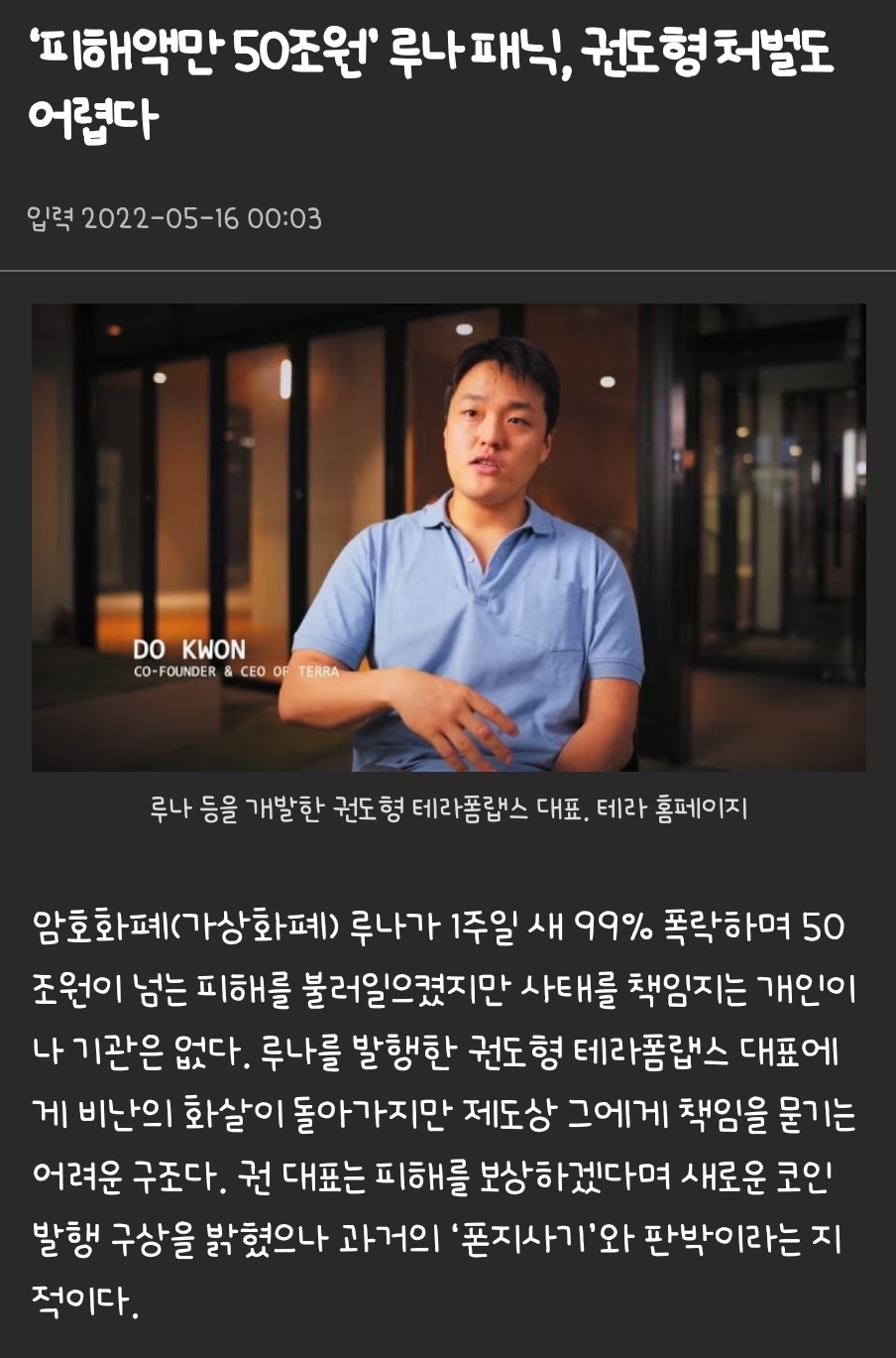루나 창업차 권도형 근황 feat.변호사