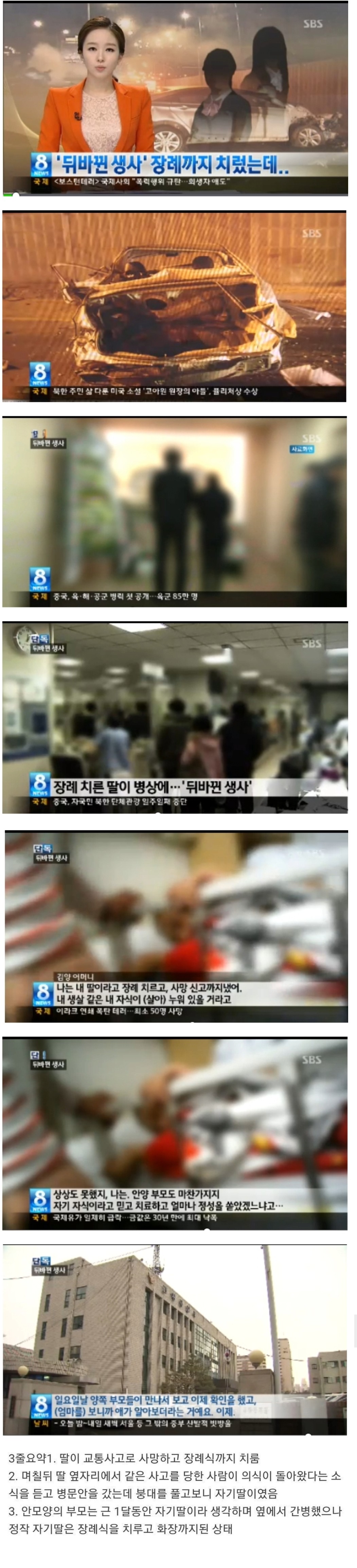 장례까지 치뤘으나 딸이 뒤바뀐사건
