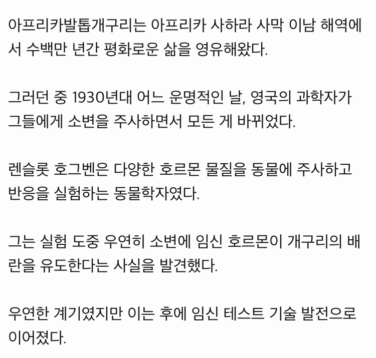 과학자들은 개구리 몸에 임신한 여자 오줌을 주입하면