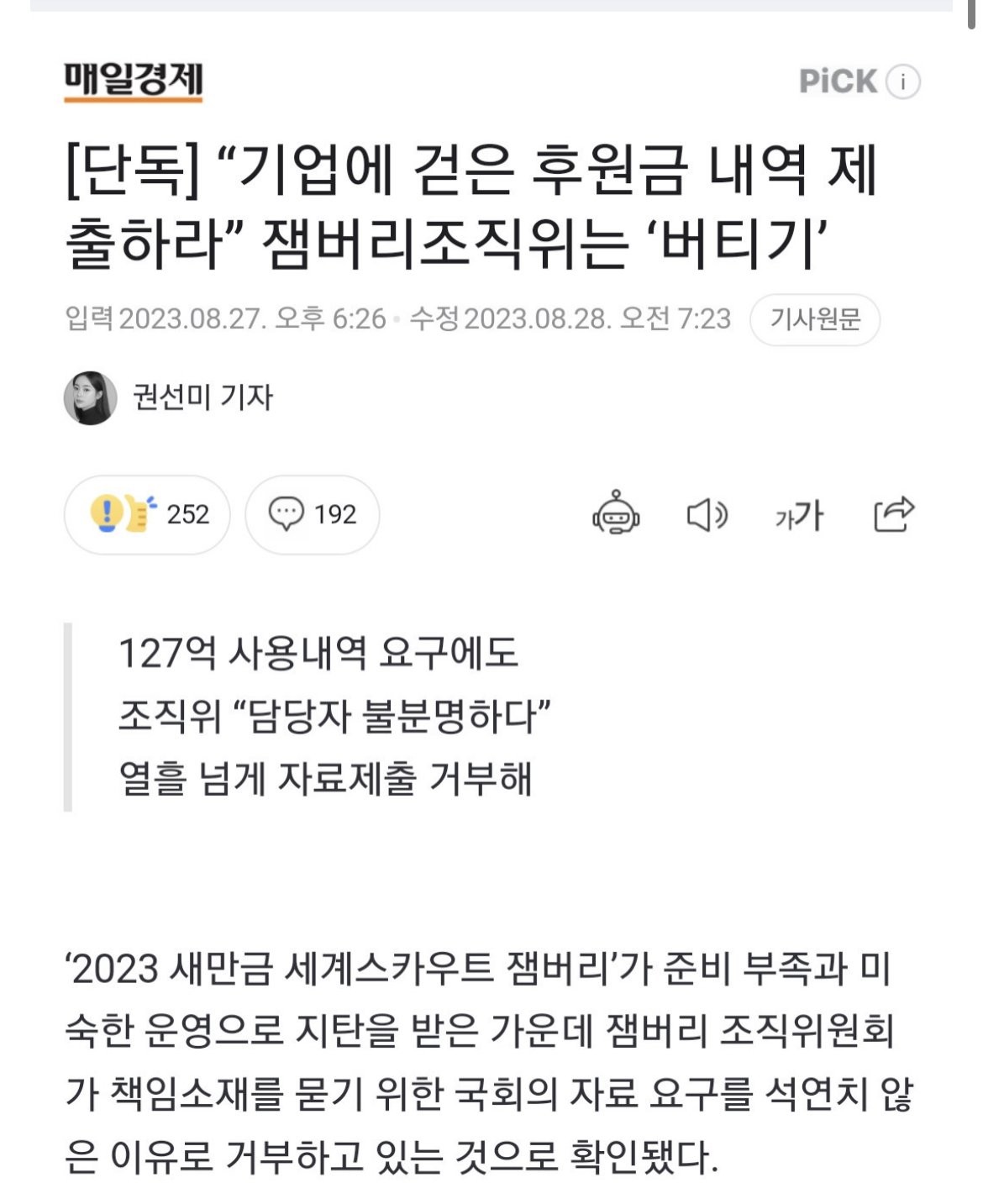 잼버리 조직위, 기업 후원금 내역 공개 거부.jpg