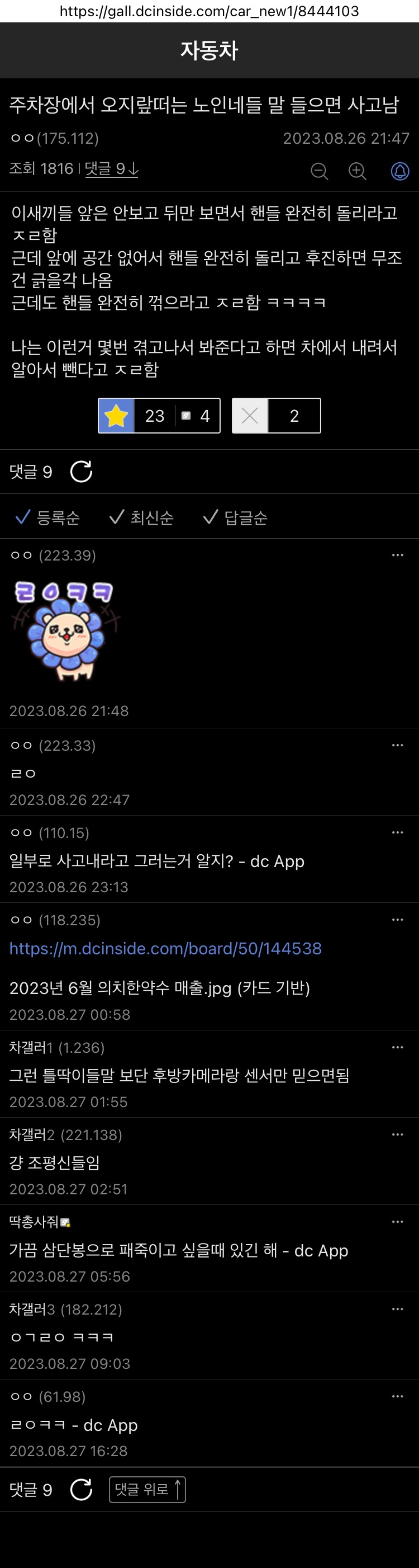 주차장에서 오지랖떠는 노인네들 말 들으면 사고남