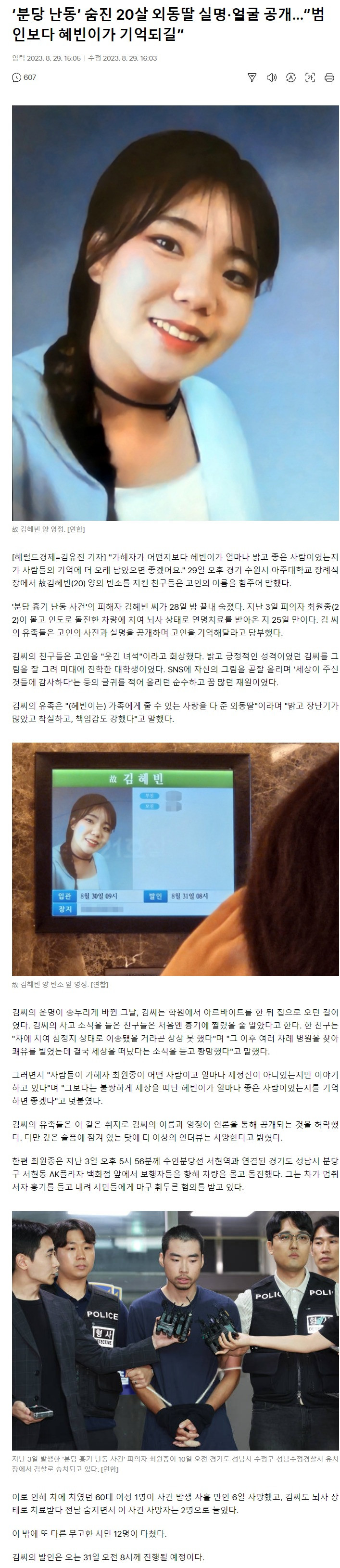 ‘분당 난동’ 숨진 20살 외동딸 실명·얼굴 공개