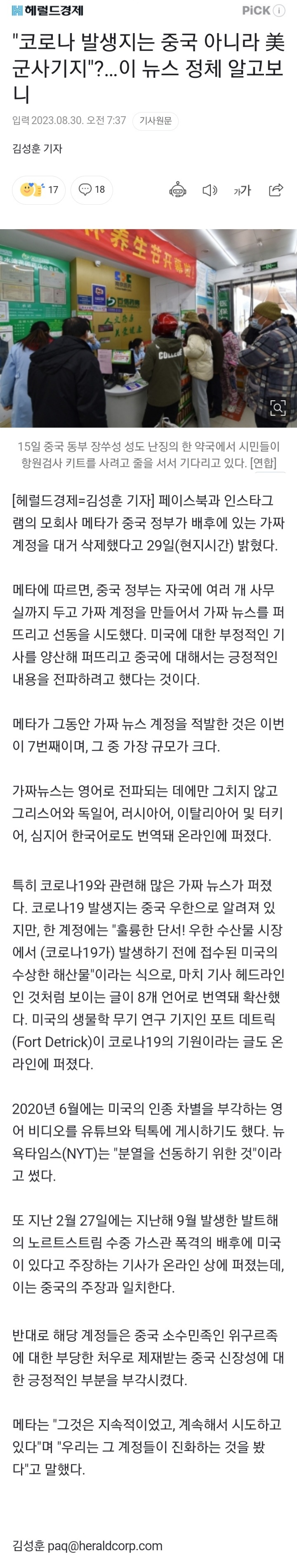 코로나 발생지는 미국서 발생했다는 기사의 정체