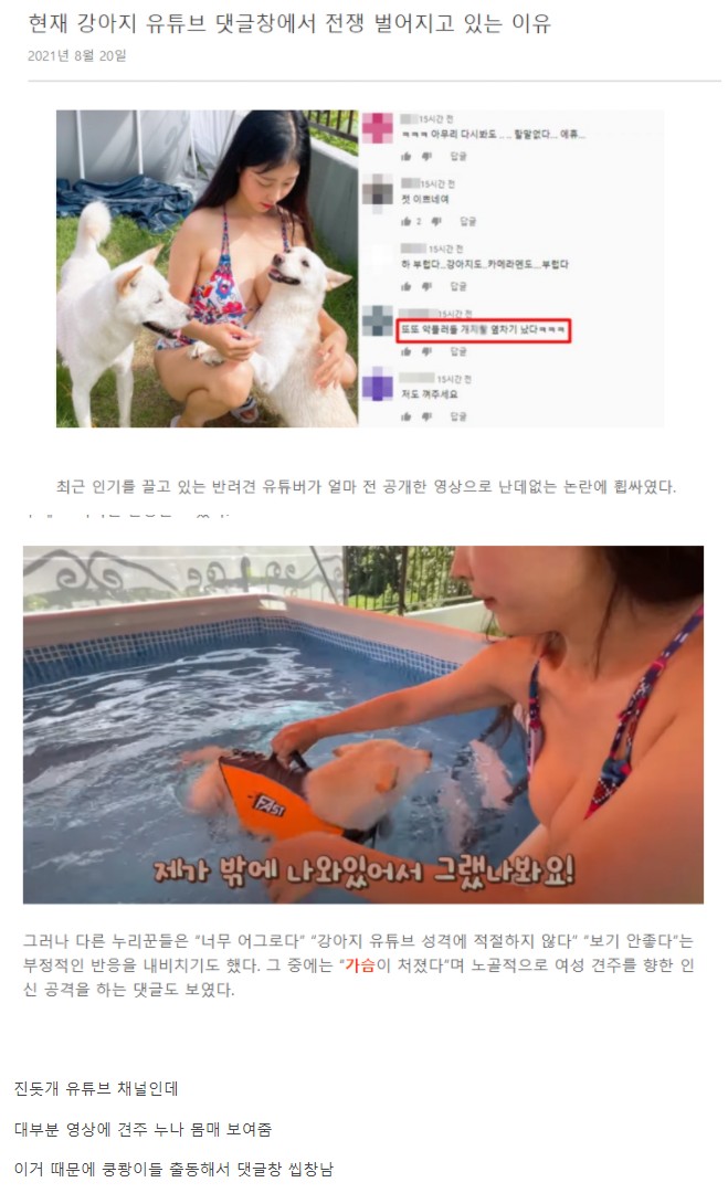 페미들이 좌표 찍은 강아지 유튜브 채널