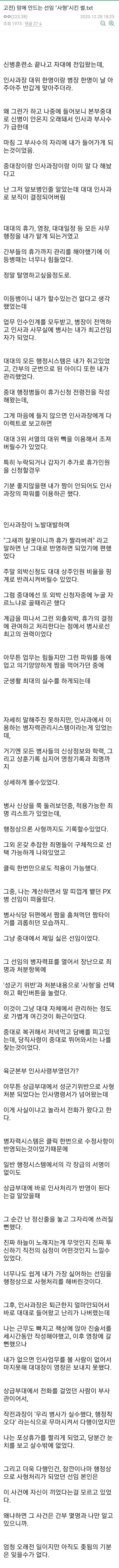 군대에서 선임 사형시킨 썰