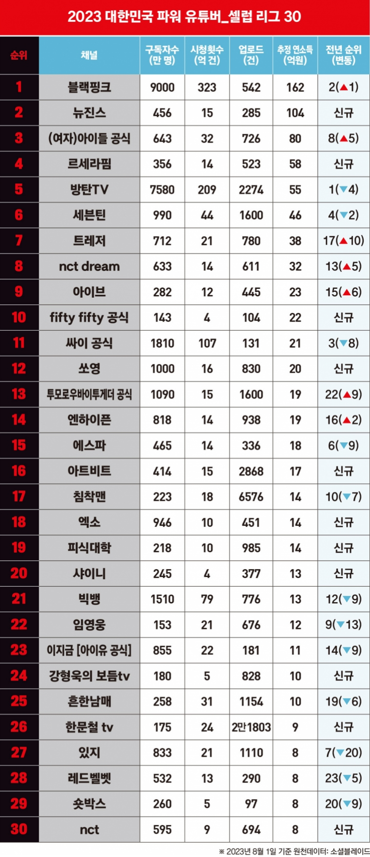 2023년 한국 유튜버 파워랭킹