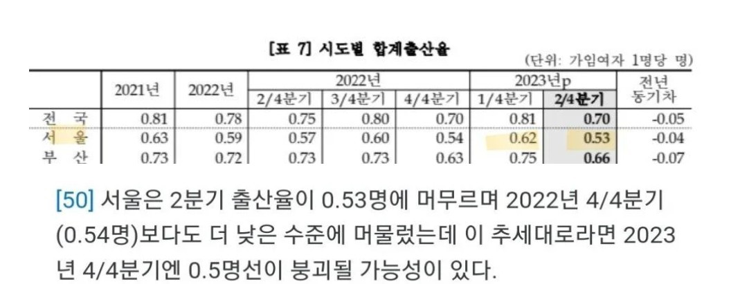 출산율 0.5명 깨지기 직전인 서울