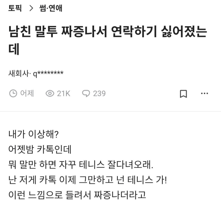 남친 말투 짜증나서 연락하기 싫어졌는데
