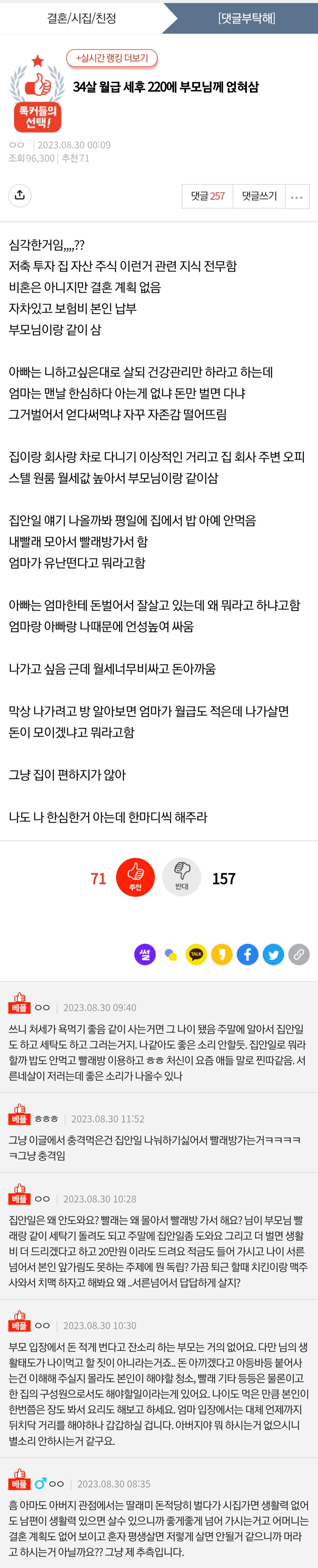 34살 월급 세후 220에 부모님께 얹혀삼, 심각한거임,,,??