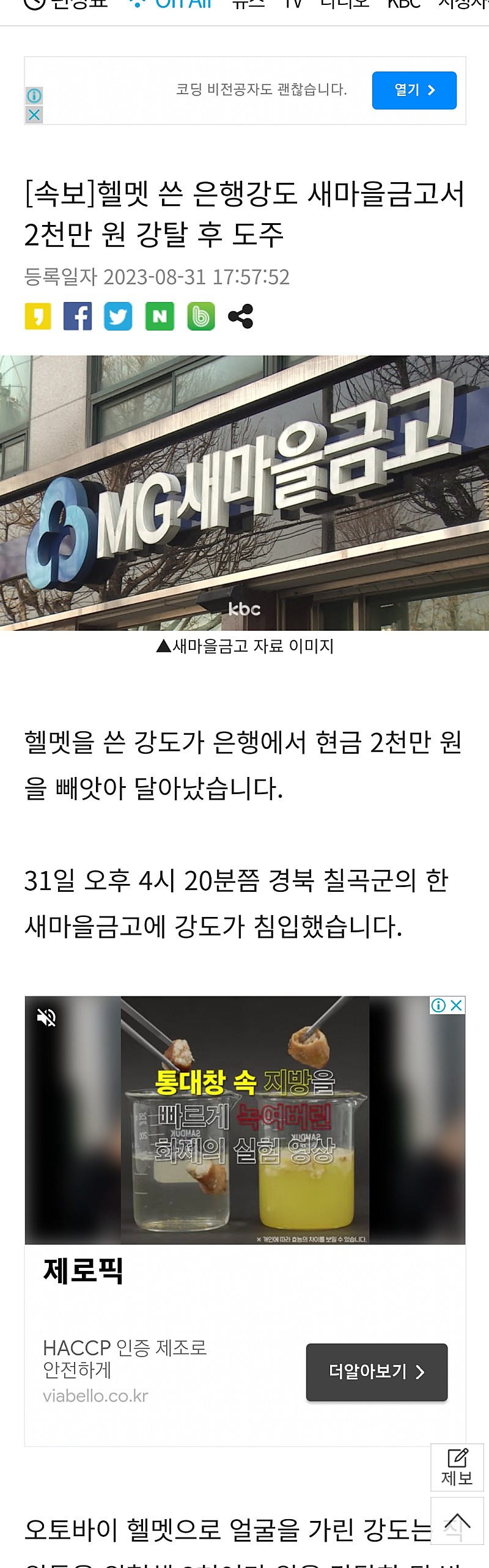 헬멧 쓴 은행강도 새마을금고서 2천만 원 강탈 후 도주