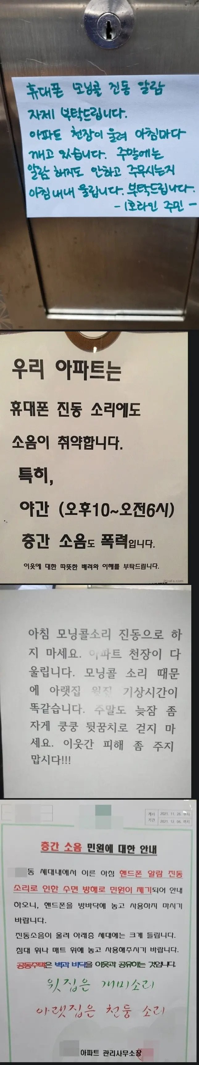 의견 갈리는 중인 휴대폰 진동 알람 주의해달라는 아파트들