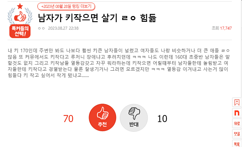 남자가 키작으면 살기 ㄹㅇ 힘듦.