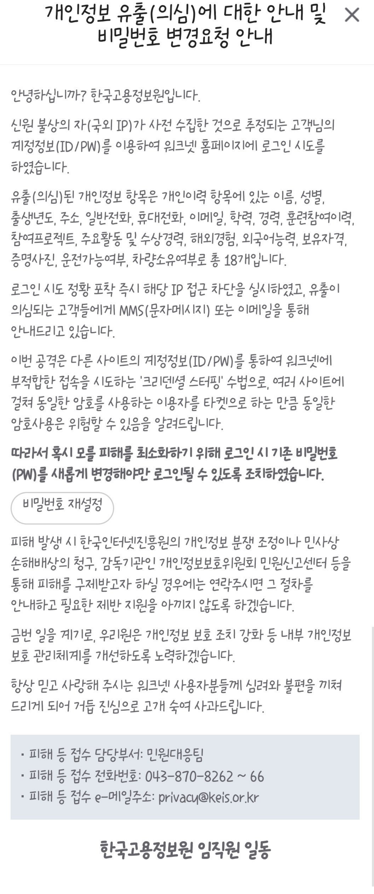 워크넷 개인정보 털림