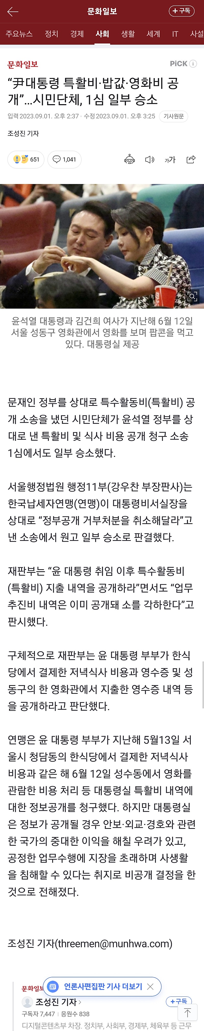 尹대통령 특활비·밥값·영화비 공개”…시민단체, 1심 일부 승소