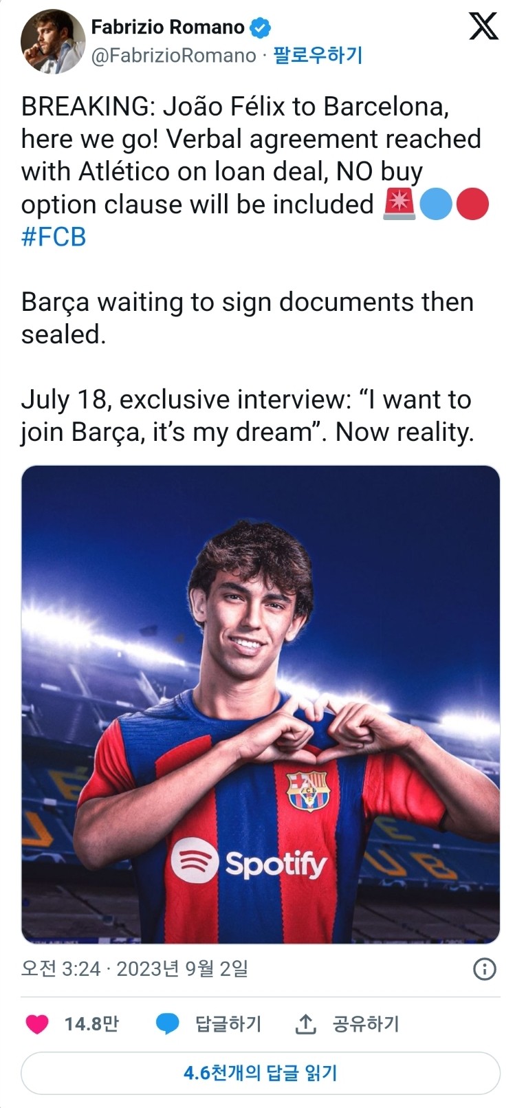 주앙 펠릭스 to 바르셀로나 Here We Go