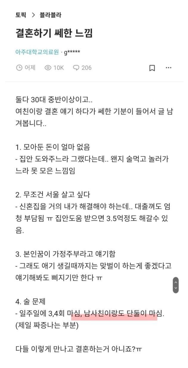 여친에게 결혼하기 쎄한 느낌을 받은 블라인...