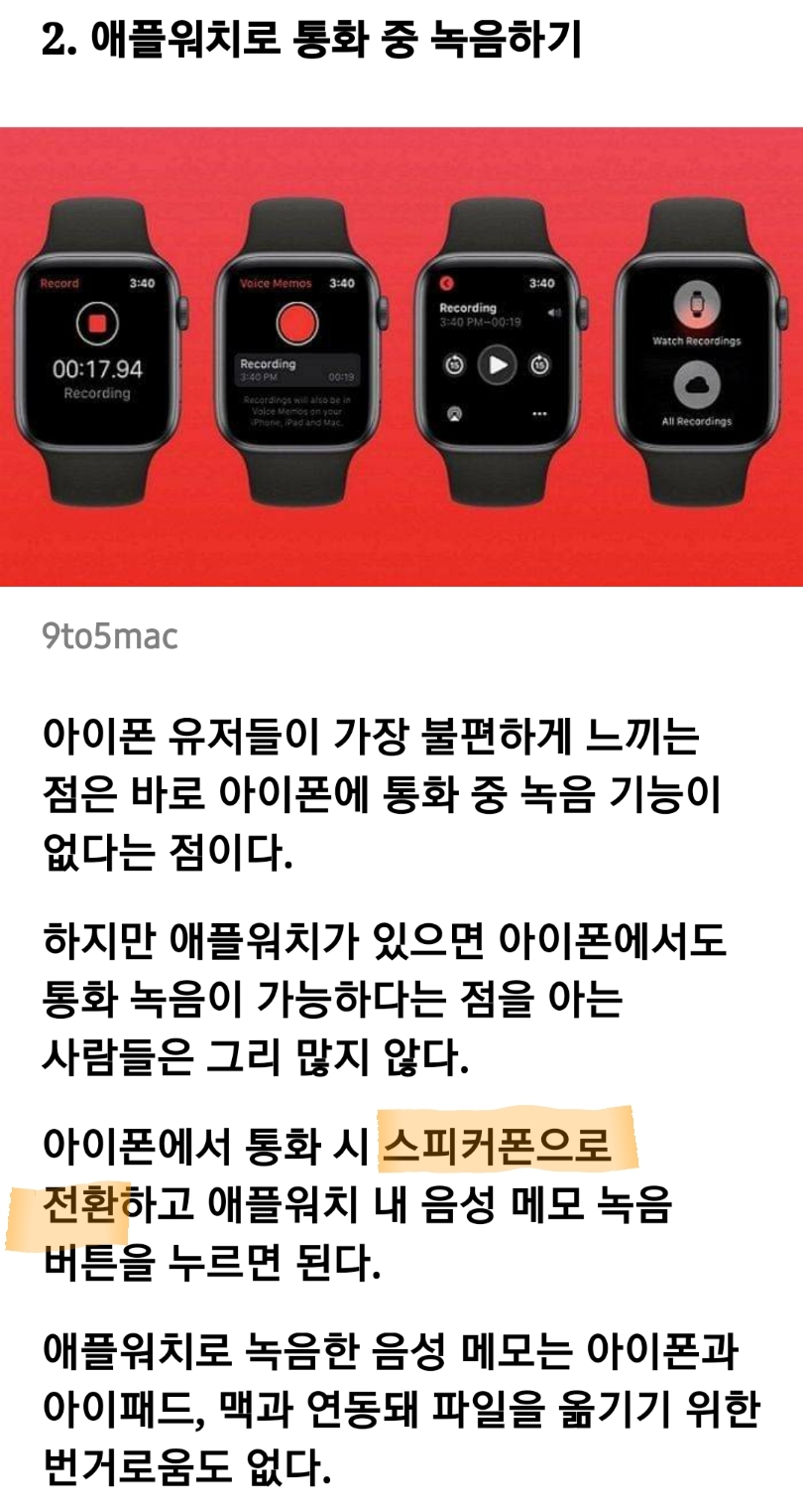 스피커폰으로 전환하고 애플워치로 녹음하기!