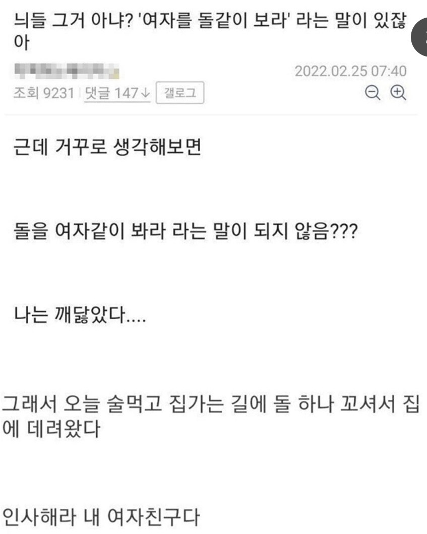 여자를 돌같이 보라는 말이 있잖아