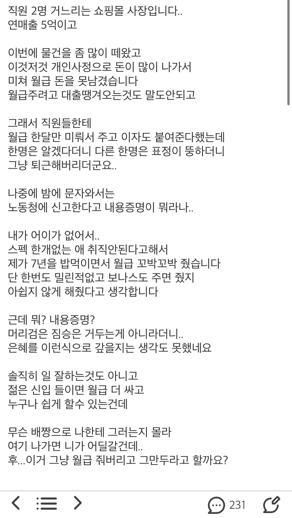 직원 한명때문에 미치겠다는 사장 ㄷㄷ