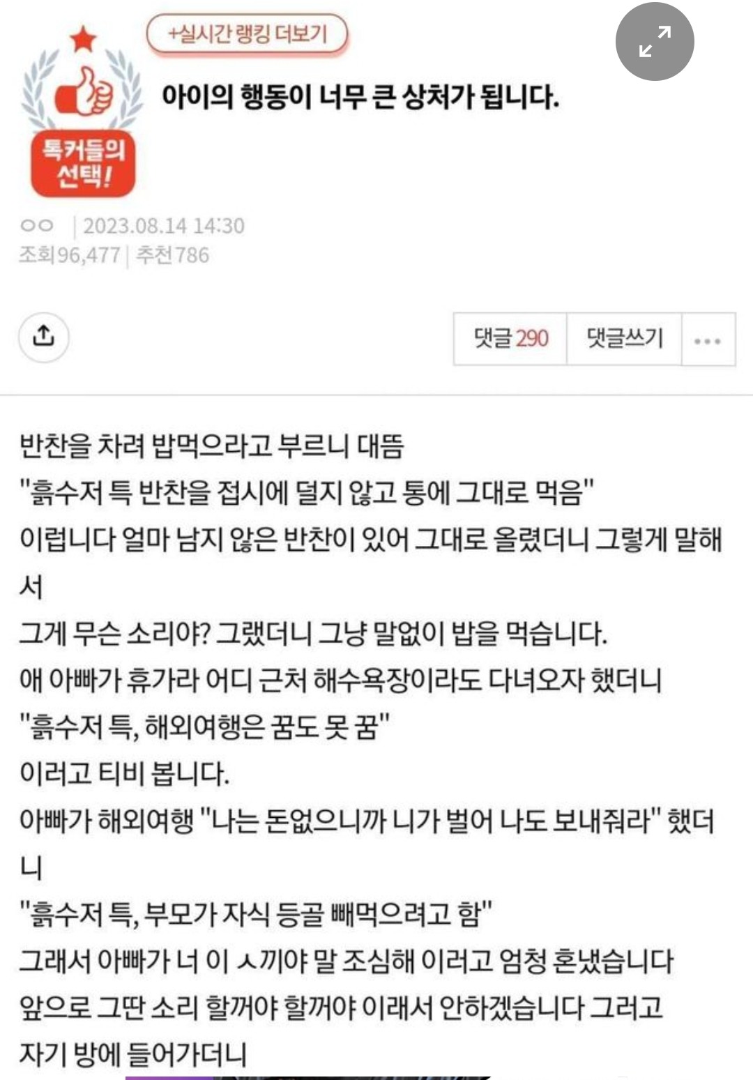 아이의 행동이 너무 큰 상처가 됩니다
