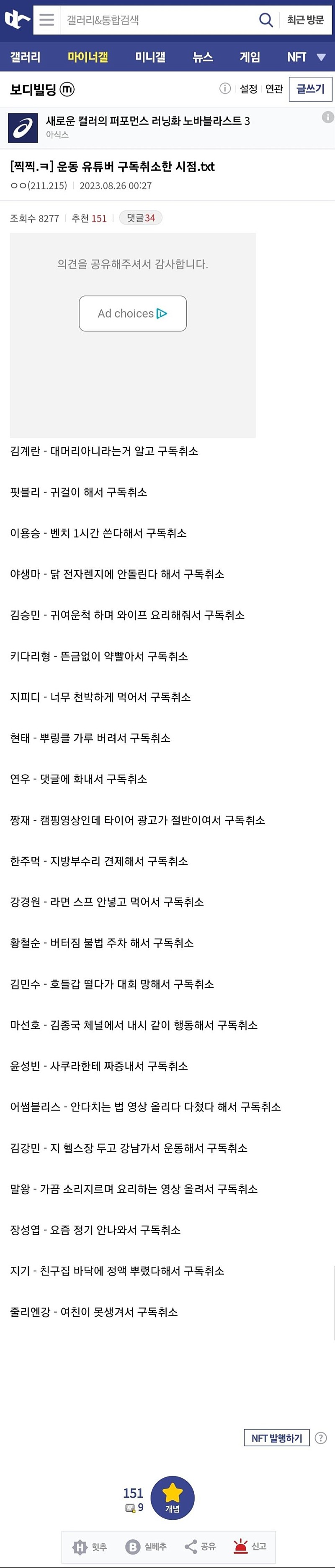 운동 유튜버 구독취소한 시점.