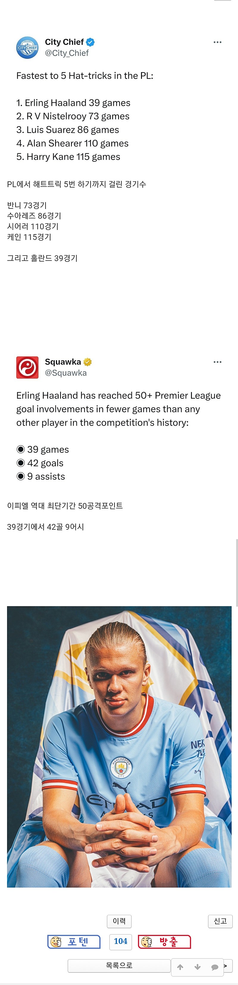 [유머게시판] 오늘 홀란드가 이뤄낸 미친 기록들