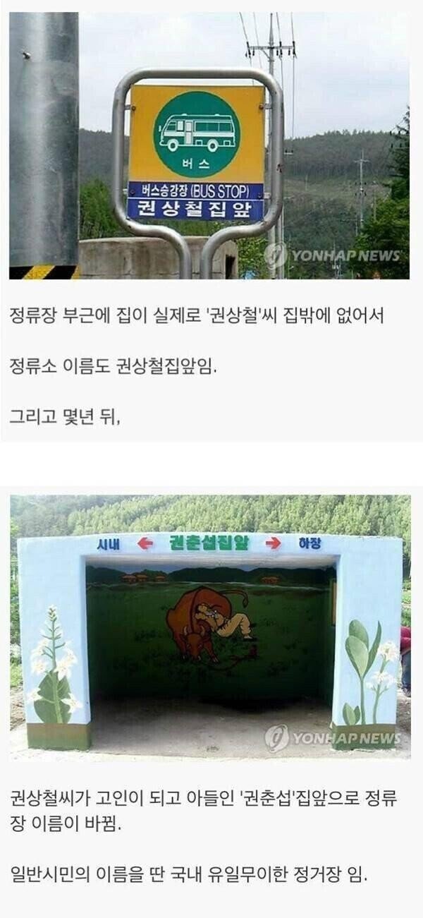 국내 유일무이 사람 이름을 딴 정류장